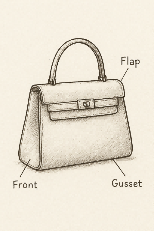 If you’re shopping for luxury bags or even high-end replicas, knowing the anatomy of a handbag helps you judge quality like a pro. Here’s a breakdown of must-know terms: